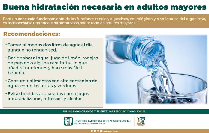 Chihuahua.- El Instituto Mexicano del Seguro Social (IMSS) en Chihuahua, recomienda a la población estar al pendiente de la adecuada hidratación en los adultos mayores, y así mantener una buena salud.