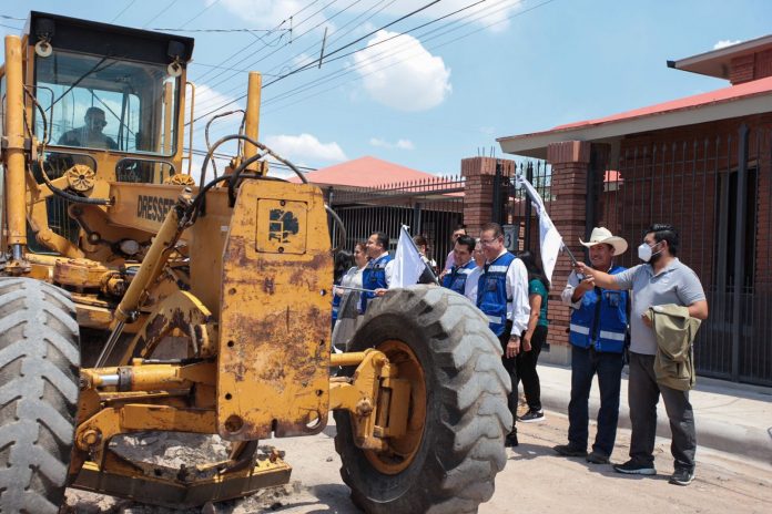 Delicias.- Este miércoles durante el arranque de obra de pavimentación de la calle Viñedos, ubicado en las Huertas, el Presidente Municipal, Jesús Valenciano, aplaudió la unión y colaboración de los vecinos de la localidad, para mejorar sus vialidades.