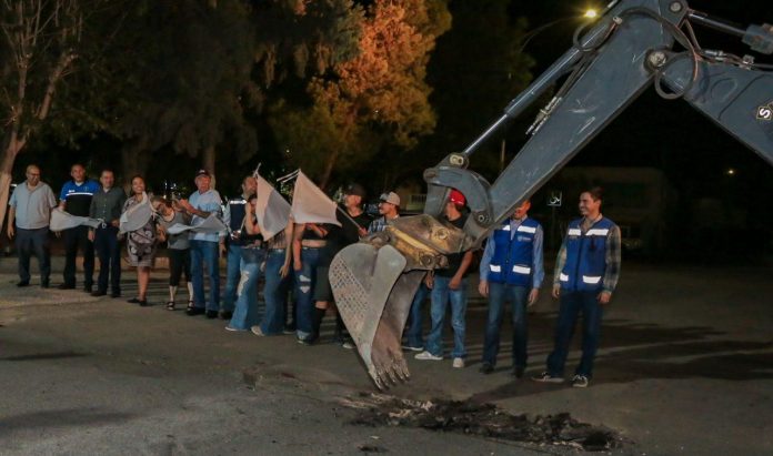 Delicias.- Con la intención de dejar obras de calidad que no provoquen contratiempos futuros, Jesús Valenciano, Presidente Municipal de Delicias, inició la pavimentación de las laterales de la Plaza de la República.