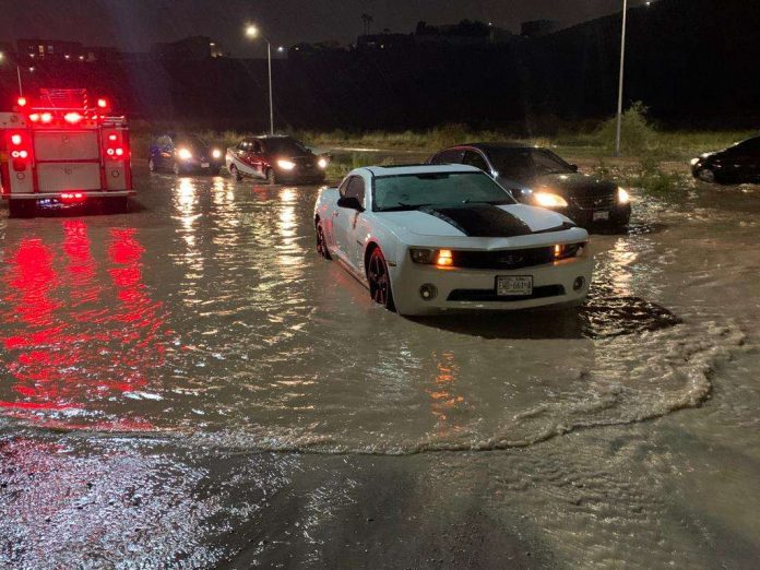 Chihuahua.- Los bomberos de la ciudad llevaron a cabo el rescate de dos menores de edad que estaban siendo arrastrados por la fuerza de una corriente tumultuosa mientras viajaban en un vehículo deportivo luego de la intensa lluvia que ocurrió durante la noche.