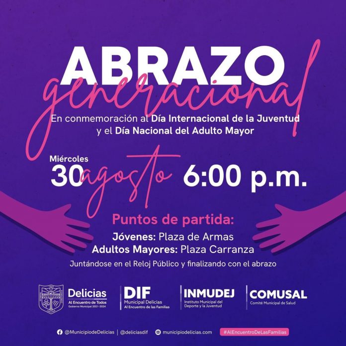 Se trata del “Abrazo generacional”, dinámica que propone separar ambas generaciones en sentido opuesto, concentrar al adulto mayor en la plaza Carranza y a los jóvenes en la de Armas, para en una caminata rumbo al Reloj Público, puedan encontrarse en este punto medio y se reciban con un abrazo, signo representativo de la fraternidad y el amor.