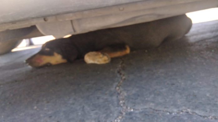 Delicias.- Está mañana de viernes elementos del departamento de vialidad y seguridad pública se trasladaron a la carretera Delicias a Rosales donde reportaban que una perrita fue atropellada por un vehículo y que se encontraba con vida pero atorada abajo del vehículo.