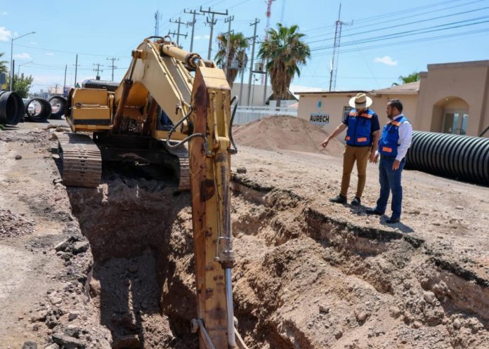 Delicias.- El director ejecutivo de la Junta Municipal de Agua y Saneamiento, Juan Carlos Velasco, supervisó los trabajos para la reposición del colector dren Laguna Seca, obra de vital importancia para mejorar la infraestructura hídrica de ciudad Delicias.