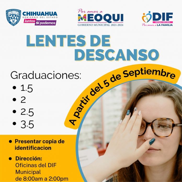 Meoqui.- A partir de este martes en el DIF Municipal de Meoqui estarán brindando lentes de descanso graduados para las personas que más lo requieran, así lo informó el director Luis Valles, quien invitó a la ciudadanía para que acuda a las instalaciones por sus anteojos totalmente gratuitos.