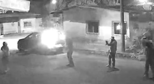 En el video se observa que uno de los sujetos portaba un artefacto en la mano que, aparentemente, intentó lanzar antes del llamado para abordar la camioneta que esperaba encendida para que el grupo de delincuentes huyera.