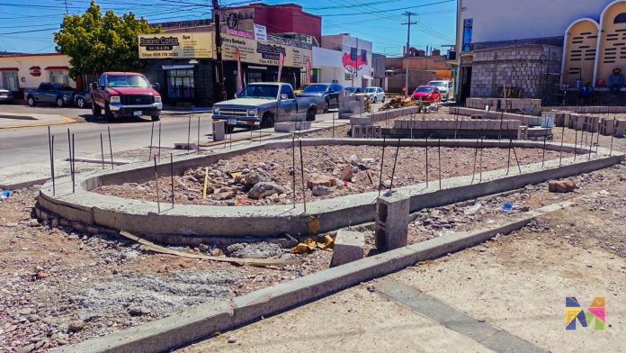 Meoqui.- Con un avance del 35 por ciento, en Meoqui realizan trabajos de colocación de posas en la Plaza de Personajes Ilustres, así lo informó Ulises Escobar, director de Obras Públicas Municipales, quien compartió que también trabajan en la nueva caseta de taxis, así como en el cuarto de máquinas.