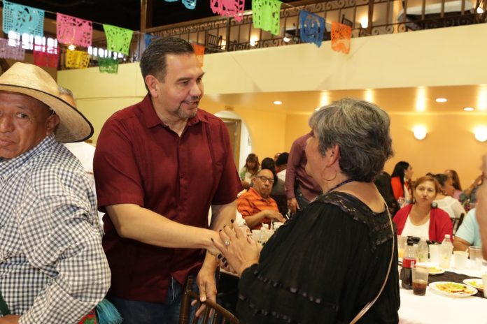 Ciudad Juárez.- En el marco de los festejos patrios y durante una reunión con comerciantes de mercados populares, el Presidente Municipal, Cruz Pérez Cuéllar, destacó que trabajando unidos Gobierno y sociedad, se podrá sacar adelante a esta frontera.
