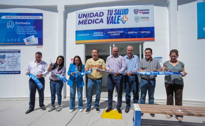 Delicias.- Este viernes el Presidente Municipal, Jesús Valenciano, acompañado del secretario de Salud de Gobierno del Estado, Gilberto Baeza, inauguró la clínica “Tú Salud Vale”, espacio de primer contacto y de atención integral, que cuidará del bienestar de 10 mil familias.