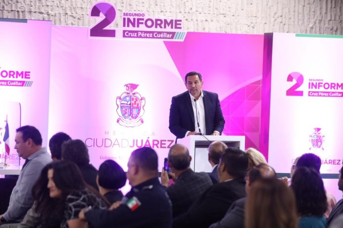 Ciudad Juárez.- En el marco de la presentación de su Segundo Informe de Gobierno, el Presidente Municipal, Cruz Pérez Cuéllar, destacó que su administración se ha destacado por realizar obra pública con la mayor calidad posible y sin generar un solo peso de deuda para la ciudad.