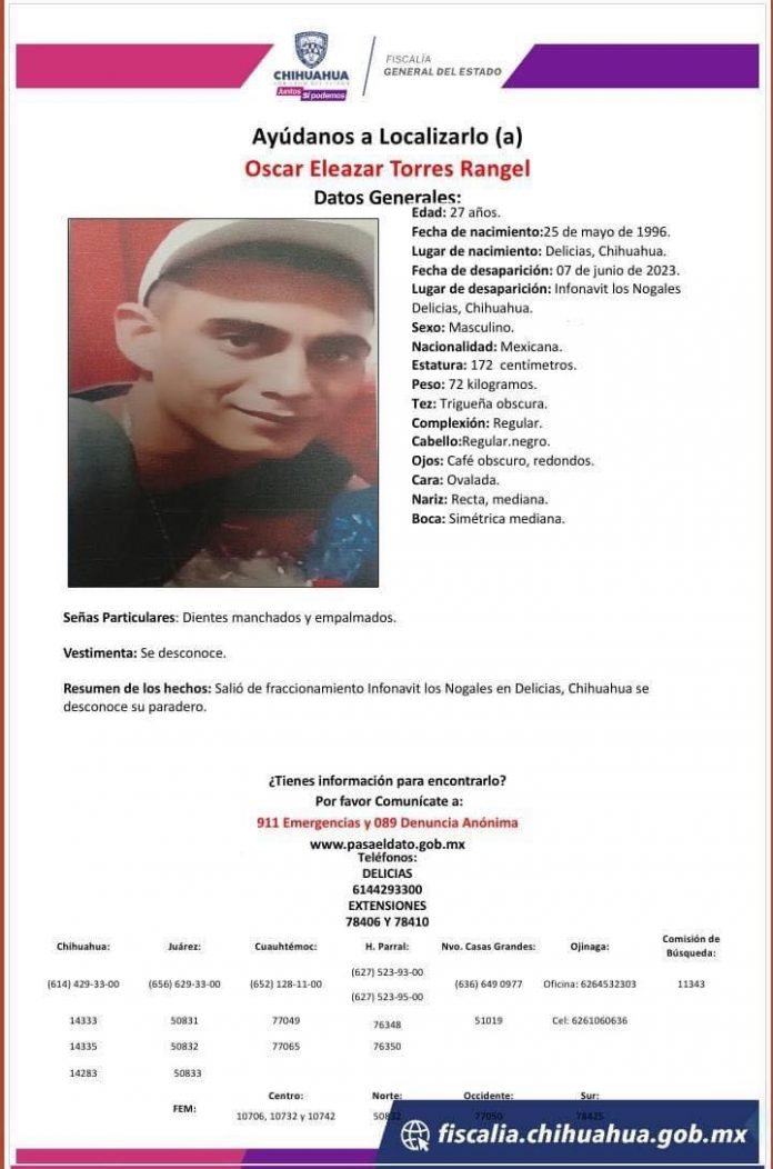 La Fiscalía General del Estado, solicita el apoyo de la ciudadanía para localizar a Óscar Torres de 27 años de edad