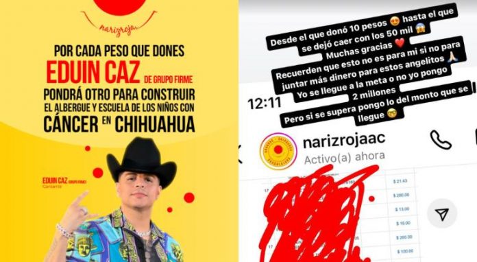 El vocalista de Grupo Firme compartió en sus redes sociales que por cada peso que la gente done, él va a poner otro para duplicar la cantidad que van a recibir los niños con cáncer en Chihuahua.