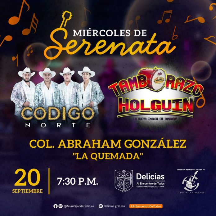 Asimismo, invitó a los vecinos de la colonia Abraham González, mejor conocida como “La Quemada”, a que disfruten de la música en vivo este miércoles 20 de septiembre, en la plaza, a partir de las 7 de la tarde.