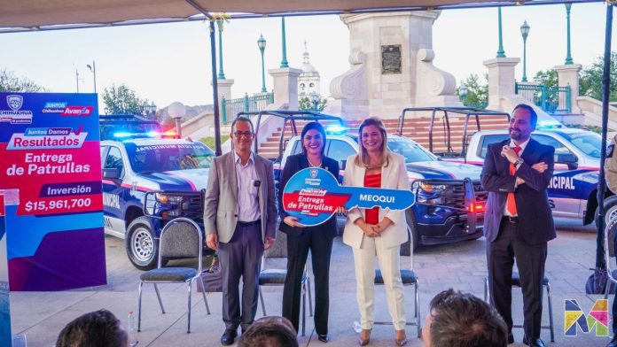 Meoqui.- “A nombre de mis compañeros alcaldes y alcaldesas del estado, le damos las gracias y le refrendamos nuestro apoyo para seguir trabajando juntos”, así agradeció la alcaldesa de Meoqui Miriam Soto a la Gobernadora Maru Campos, al recibir una nueva unidad para la corporación de Seguridad Pública Municipal, sumando un total de tres nuevas unidades de patrullaje.