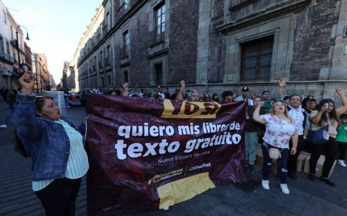 “La gobernadora de Chihuahua, María Eugenia Campos, nos está privando de los libros”, dieron a conocer los padres de familia ante los medios de comunicación, agregando que lo que quieren es solicitar el apoyo del presidente para que a la brevedad posible les entreguen los tomos.