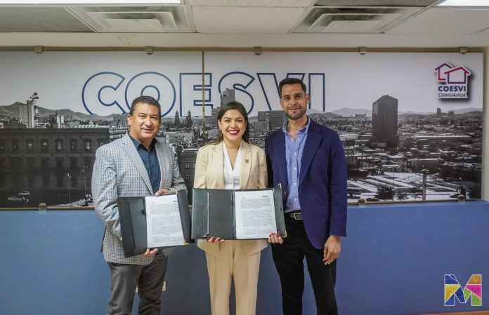 La alcaldesa acudió a la capital del estado para firmar este convenio, del cual José Antonio Chávez, director general de COESVI, informó que empataron el recurso municipal para beneficiar a más familias, destacando que: “Hemos recibido la instrucción directamente de la Gobernadora Maru Campos que no dejemos de contribuir en el mejoramiento de las viviendas; una organización muy bien planteada por parte del Proyecto de Meoqui a través de la alcaldesa Miriam Soto y eso nos da la confianza de que los recursos se están aplicando en las necesidades más sentidas de la población, tenemos otros proyectos que estuvimos platicando y sin duda la estaremos apoyando para que se concluyan con éxito”.