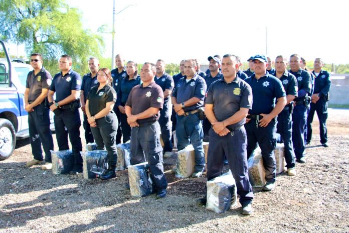 Saucillo.- La alcaldesa Aidé López De Anda, y el Director de Seguridad Pública Municipal, Lic. César Octavio Gandara Ramos, llevaron a cabo una destacada ceremonia de entrega de equipo y unidades a los valientes elementos de Seguridad Pública del municipio. Este importante apoyo, que consta de 124 uniformes completos y dos unidades completamente equipadas, fue donado por el Gobierno del Estado.