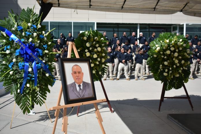 Durante la ceremonia de cuerpo presente, se llevó a cabo el último pase de lista con el nombre del agente del turno nocturno, así como las salvas de honor y el encendido de sirenas.