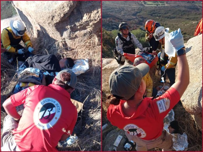 “Ante el reporte del Centro de Control, Comando, Comunicación (C4) de la ciudad de Tecate, Grupo Beta se trasladó -en compañía de otras instancias locales de seguridad y rescate- a la falda del cerro, donde se encontraban 11 connacionales que informaron de un lesionado y dos más que habrían perdido la vida”, indicó el INM.