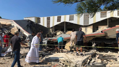 Tamaulipas.- La Secretaría de Seguridad de Tamaulipas informó este domingo que trabaja en el rescate de feligreses tras el derrumbe del techo en la iglesia La Santa Cruz en Ciudad Madero, Tamaulipas, México.