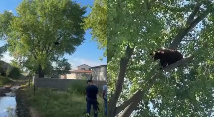 La mañana de este viernes los pobladores de El Terrero, Namiquipa llamaron a las autoridades ante el avistamiento de un oso negro en lo alto de un árbol.