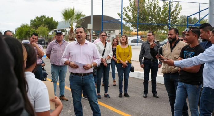 Delicias.- Como parte del compromiso de dignificar a las colonias rurales de Delicias, el Presidente Municipal, Jesús Valenciano, en compañía de los regidores, diputado local, y funcionarios, hizo entrega de la obra de pavimentación en la colonia Morelos mejor conocida como 4 Vientos.