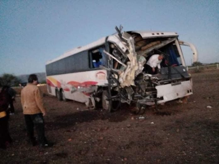 Parral.- Al menos 5 personas resultaron lesionadas luego de un aparatoso choque de un camión de pasajeros contra un tráiler en la carretera vía corta a Chihuahua.