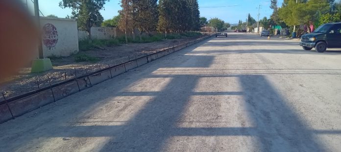 Meoqui.- Con un avance del 40 por ciento, trabajan en colado de guarniciones de la segunda etapa de pavimentación de la Calle Girasoles en la comunidad de la Felipe Ángeles de Meoqui, así lo informó Ulises Escobar, director de Obras Públicas Municipales, quien compartió que luego de culminar estos trabajos continuarán con la carpeta asfáltica.