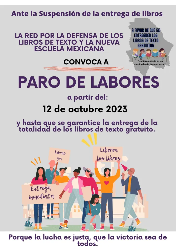 Así mismo, a partir de mañana se convoca a un paro de labores en todas las escuelas del estado, por lo que se suspenderán clases hasta que se reanude de nueva cuenta la entrega de estos libros.