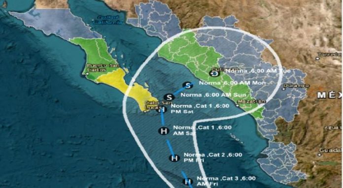 La Coordinación Nacional de Protección Civil (CNPC) activó el Sistema de Alerta Temprana para Ciclones Tropicales (SIAT-CT) y estableció las regiones que deben prepararse por los efectos del huracán Norma, que alcanzó categoría 4 esta mañana de 19 de octubre.