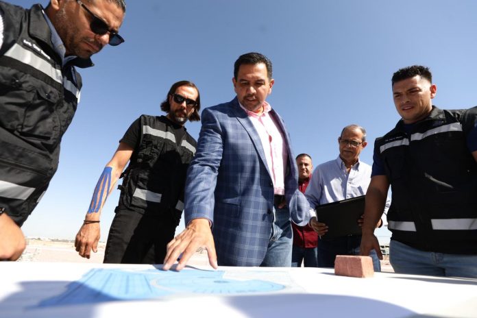 Ciudad Juárez.- Este día el Presidente Municipal, Cruz Pérez Cuéllar, visitó la zona donde se construye el Parque Urbano Suroriente, a fin de constatar el avance de los trabajos de este espacio, el cual será de gran beneficio para la comunidad que habita al suroriente de Ciudad Juárez.