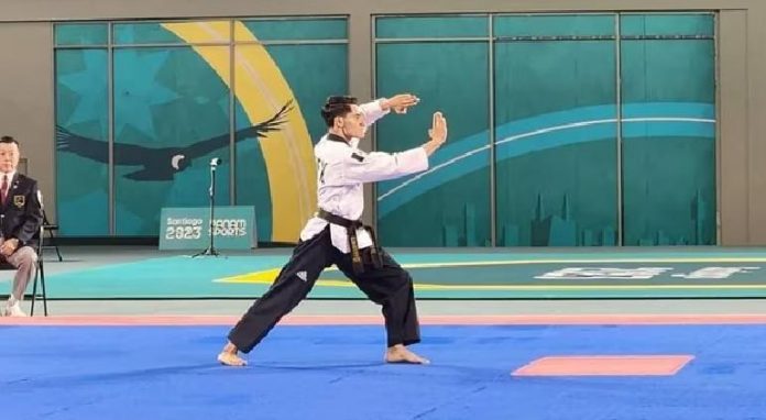 “¡𝗢𝗥𝗢 𝗠𝗘𝗫𝗜𝗖𝗔𝗡𝗢! 🥇🇲🇽William Arroyo se proclama campeón en los XIX Juegos Panamericanos Santiago 2023, tras vencer en la final de Poomsae varonil”, escribio Conade en Twitter.