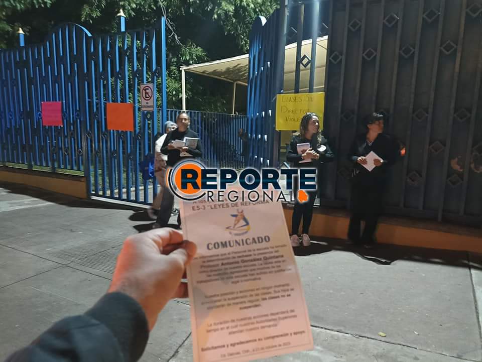La mañana de este lunes como protesta pacífica y con presencia de policía municipal, personal de apoyo, administrativo y docente de la Secundaria Federal Leyes de Reforma tomaron la escuela para solicitar a autoridades educativas y sindicales atiendan su reclamo.