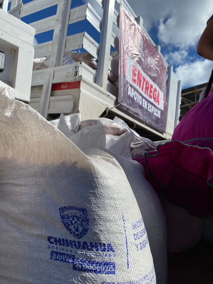 La dispersión inició en el municipio de Batopilas, donde se distribuirán 174 toneladas de maíz y 58 toneladas de frijol, en diversas comunidades de pueblos originarios afectadas por las condiciones climáticas adversas.
