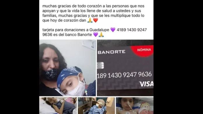 A nombre de Guadalupe y una cuenta de banco en Banorte, se solicita el dinero en Facebook para cubrir gastos médicos que no existen.