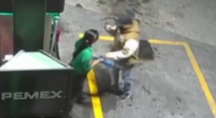 México.- Trabajadora de una estación de gasolina roció con combustible a un hombre con la intención de evitar que este la asaltara.