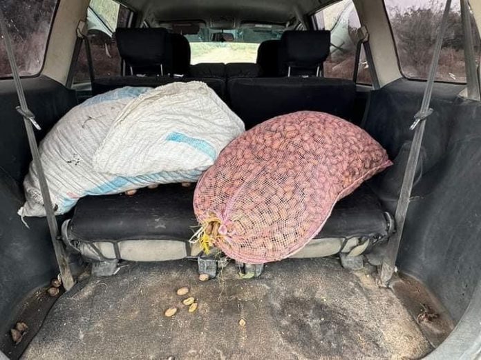 Delicias.- Elementos de la Policía del Estado aseguraron un vehículo con reporte de robo en el que se transportaba nuez sin identificar la procedencia, en el municipio de Delicias, Chihuahua.