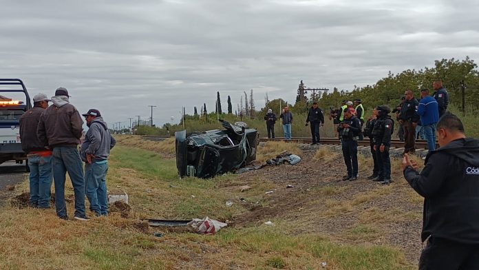 Delicias.- Un incidente vial tipo volcadura, se registró la tarde de este martes en la Carretera Federal #45, a la altura de la Termoeléctrica, involucrando a un vehículo de la marca Honda, de color verde, el cual quedó volcado sobre su toldo, entre la vía del ferrocarril y la carretera federal, mientras que el conductor de 35 años, por fortuna solo sufrió lesiones leves.