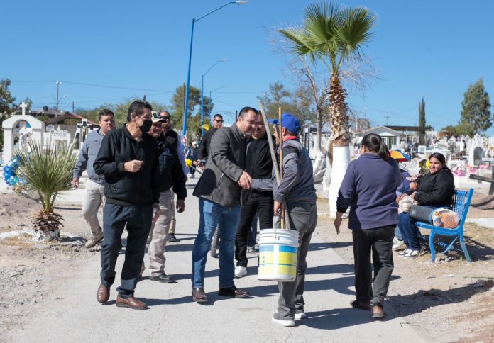 Delicias.- Este jueves, desde las 7 de la mañana los delicienses celebran el Día de Muertos en los 4 panteones del municipio, los cuales se encuentran en óptimas condiciones, limpios, seguros y resguardados, declaró el Alcalde Jesús Valenciano.