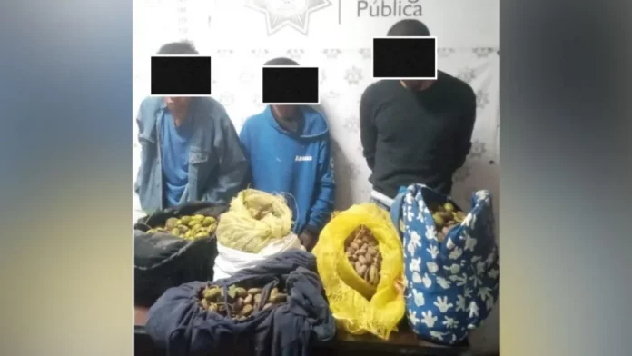 Al llegar, los agentes de seguridad se entrevistaron con el encargado de la nogalera, quien confirmó la actividad delictiva de los tres individuos, por lo que se procedió a la detención de los sospechosos y a la lectura de sus derechos, estos fueron identificados como Blas A., de 16 años; Daniel R., de 18 y Cristian A., de 27.