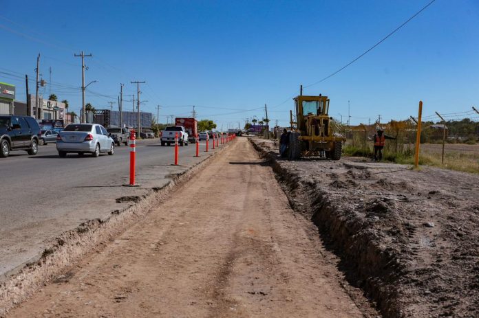Delicias.- Con la intención de conocer el progreso de las obras de pavimentación vigentes en el municipio, el Presidente Municipal, Jesús Alberto Valenciano, supervisó este viernes los trabajos que se realizan para la ampliación de la Calzada del Charro.