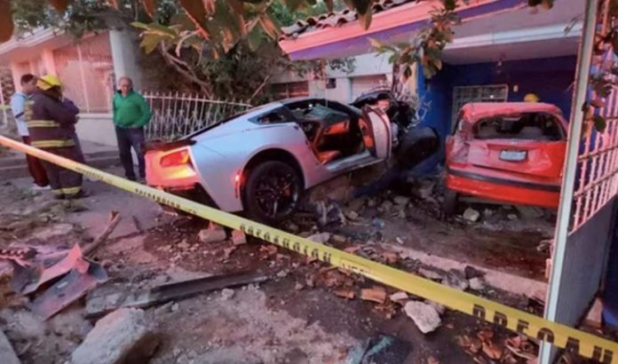 El hecho se dio en Guadalajara, Jalisco, donde una mujer en un aparentemente arranque de ira destrozó el auto de su exnovio, un Corvette valuado en 2 millones de pesos, el cual quedó destruido al igual que las casas donde se incrustó.