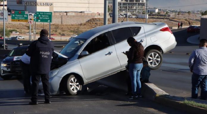 Chihuahua.- Un Nissan, Versa de color gris, quedó sobre un muro de contención sobre el Periférico de la Juventud y casi Vía Sicilia, cuando la persona que lo tripulaba perdió el control del mismo.
