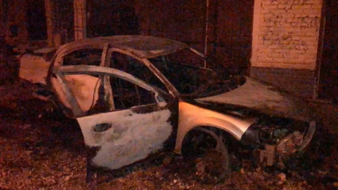 Chihuahua.- Un vehículo ardió en llama la noche de este martes al sur de la ciudad, hecho que generó la movilización de unidades de emergencia.