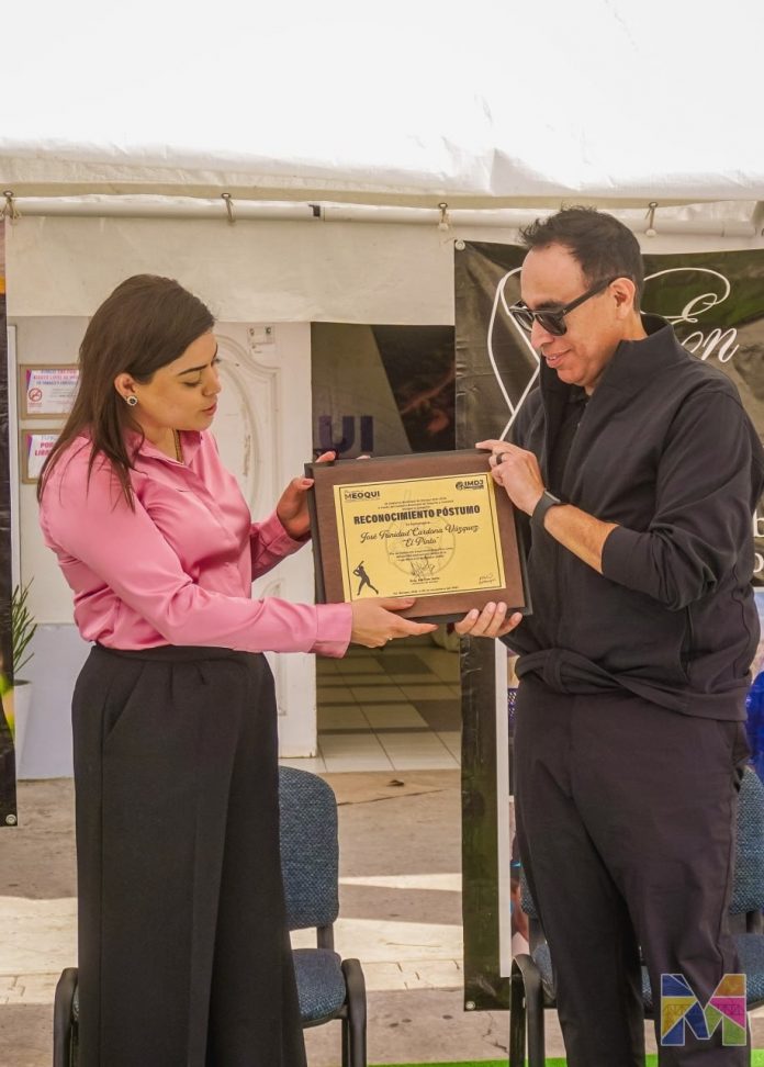 Meoqui.- “Reconocemos al destacado deportista, pero también a un gran hombre que deja a las nuevas generaciones el ejemplo de disciplina y superación, para que nuestros niños, niñas y jóvenes luchen por sus sueños, porque los sueños si se cumplen”, dijo la alcaldesa Miriam Soto al rendir homenaje póstumo al pelotero meoquense José “El Pinto” Cardona, a quien reconocieron su destacada trayectoria deportiva dentro de la Liga Mexicana de Béisbol.