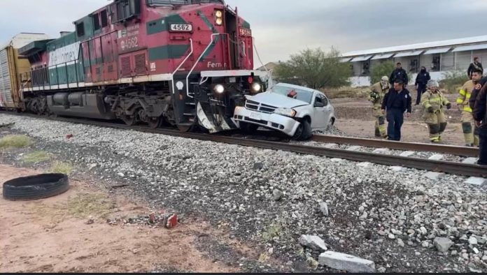 Delicias.- Está mañana de viernes minutos antes de las 8 de la mañana, un vehículo color gris fue impactado en el Cruze del puente cielo vista en un sentido de sur a norte siendo arrastrado por la máquina por más de 200 metros resultando una persona lesionada.