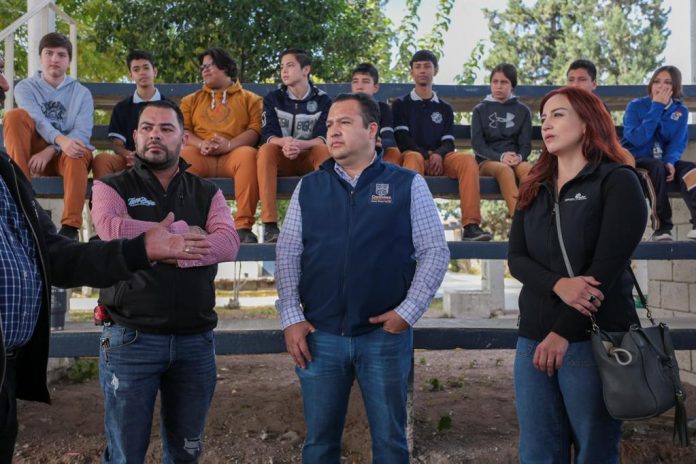 Delicias.- Bajo la misión del Alcalde Jesús Valenciano, de atender las necesidades del sector educativo y de dignificar la infraestructura de las diferentes escuelas del municipio, inició este viernes la construcción de una cancha deportiva en la Secundaria Técnica 43.