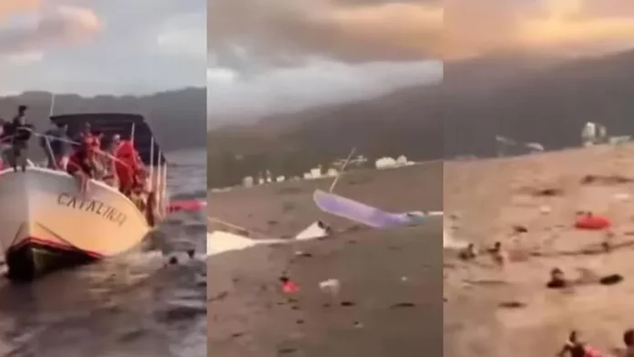 México.- Este jueves la embarcación “Catalina” se hundió en los “Arcos de Mismaloya” en Puerto Vallarta, misma que llevaba a 24 turistas que tuvieron que saltar al agua y ser rescatados por lanchas.