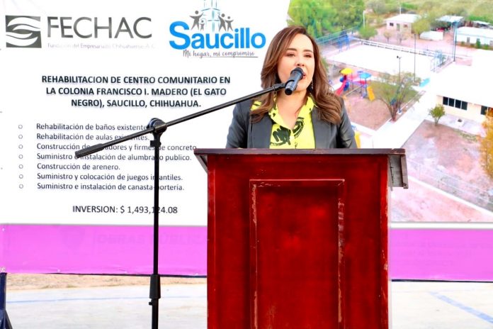 Saucillo.- En un emotivo acto, Aidé López De Anda, alcaldesa de Saucillo, encabezó la inauguración del Centro Comunitario en la comunidad Francisco I. Madero “El Gato Negro”. La obra, realizada en colaboración con la Fundación del Empresariado Chihuahuense (FECHAC), representó una inversión total de $1,493,124.08.