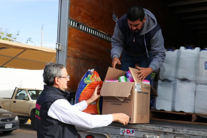 Por iniciativa de la presidenta del DIF Estatal, María Eugenia Galván Antillón, se exhortó a las presidentas de los DIF Municipales a formar una cadena de ayuda para brindar este apoyo, lo que dio como resultado la captación de estas 10 toneladas de ayuda.