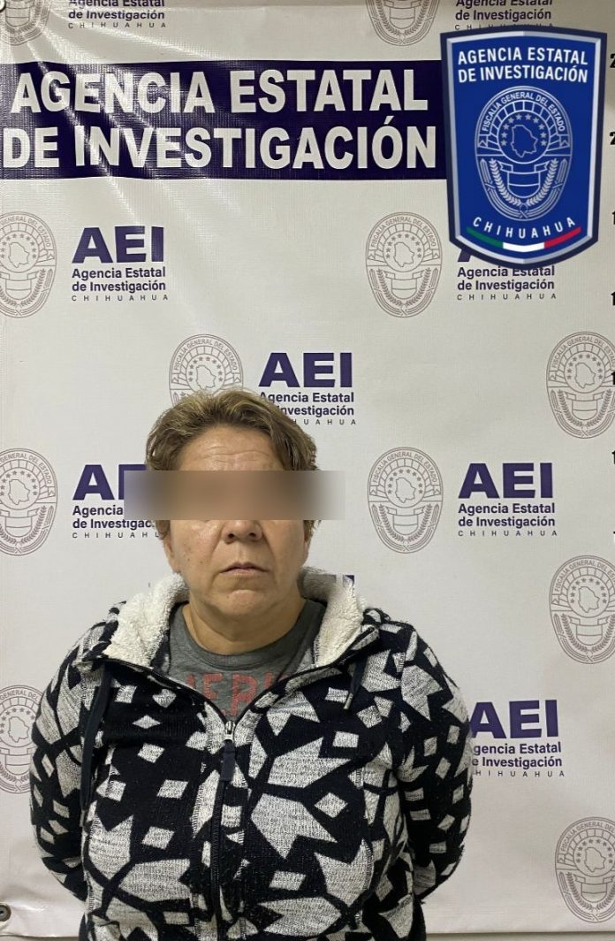 Chihuahua.- Elementos de la Agencia Estatal de Investigación (AEI) adscritos a la Unidad de Delitos contra la Vida de la Fiscalía de Distrito Zona Centro, detuvieron en el término de la flagrancia a Xóchitl del Refugio M. C., de 47 años de edad, por el delito de homicidio doloso.